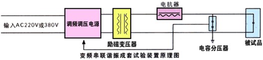 成套裝置組成為變頻調(diào)壓電源、勵(lì)磁變壓器、電抗器、分壓器及補(bǔ)償電容器。