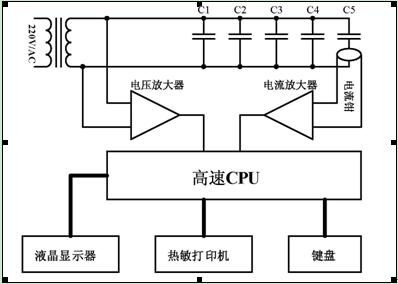 變壓器輸出 30V或 2V測試電壓,通過測試線連接到電容組的兩個匯流排上。匯流排電壓,又經過測試線引入到儀器內部的電壓檢測電路上。經過 A/D轉換器變?yōu)閿底中盘柡螅ㄟ^隔離器件,將信號送到 CPU。待測電容 Cx的電流,經過鉗型 CT取樣和程控放大后,通過 A/D轉換器變?yōu)閿底中盘,送?nbsp;CPU。 CPU將收到的數字信號進行處理,并取得電壓 U和電容電流 Ic ,然后按:Cx=Ic/ωU計算電容量,ω=2πf,f為頻率。