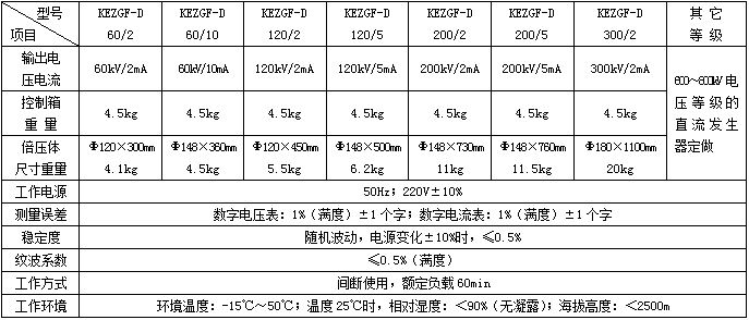 產(chǎn)品名稱:智能直流高壓發(fā)生器 產(chǎn)品型號:1、KEZGF-D-120KV/2mA 2、KEZGF-D-120KV/3mA 3、KEZGF-D-120KV/5mA 產(chǎn)品別稱:1、直流高壓發(fā)生器 2、高壓直流發(fā)生器